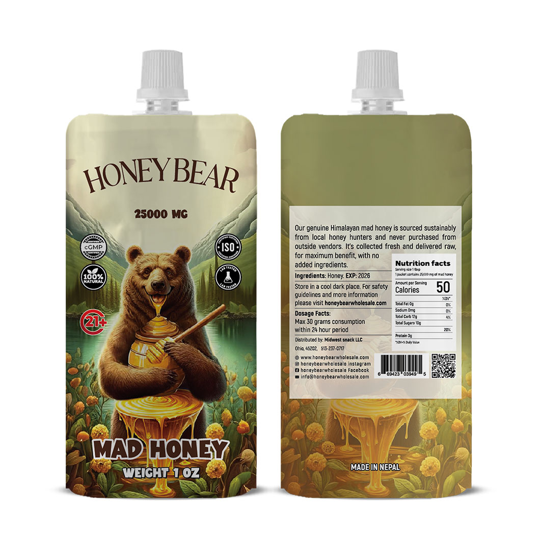 Introducing the newest addition to our adventurous lineup: **Honey Bear Pouches**. Perfectly crafted for enthusiasts of the wild and seekers of the extraordinary, these pouches encapsulate the essence and allure of mad honey in a convenient and accessible form. Here’s everything you need to know about our Mad Honey Bear Pouches: